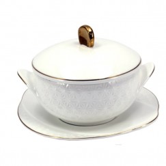 Бульонница 350 мл с блюдцем фарфоровая белая Interos Снежная Королева (36-899)