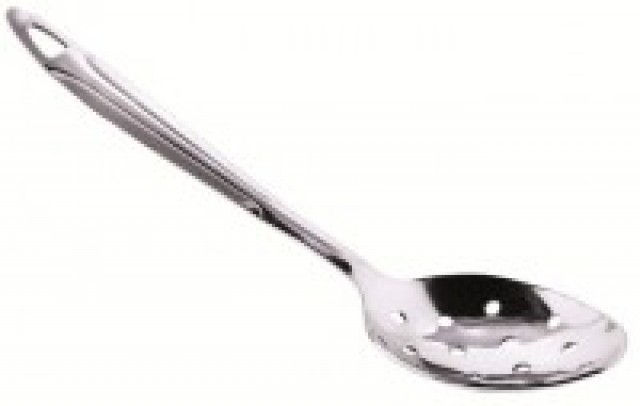 Гарнирная ложка с перфорацией из пищевой нержавеющей стали. Общая длина ложки 24 см. Ручка 15 см, рабочая часть- 9 см. На ручке имеется кольцо для подвешивания. Гарнирную ложку Миллениум можно мыть в посудомоечной машине.