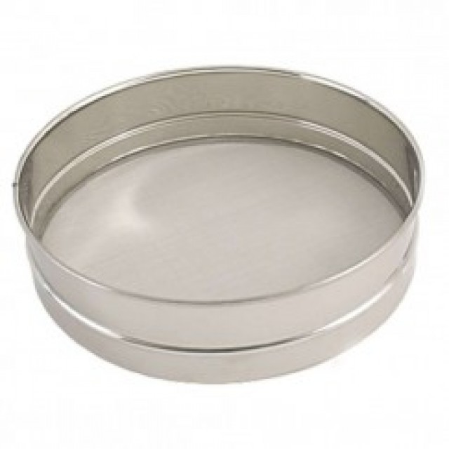 Сито для просеивания муки из пищевой нержавеющей стали из набора Empire 2166. Диаметр 230 мм, высота 45 мм, объем сита 1300 мл. Сито можно мыть в посудомоечной машине.